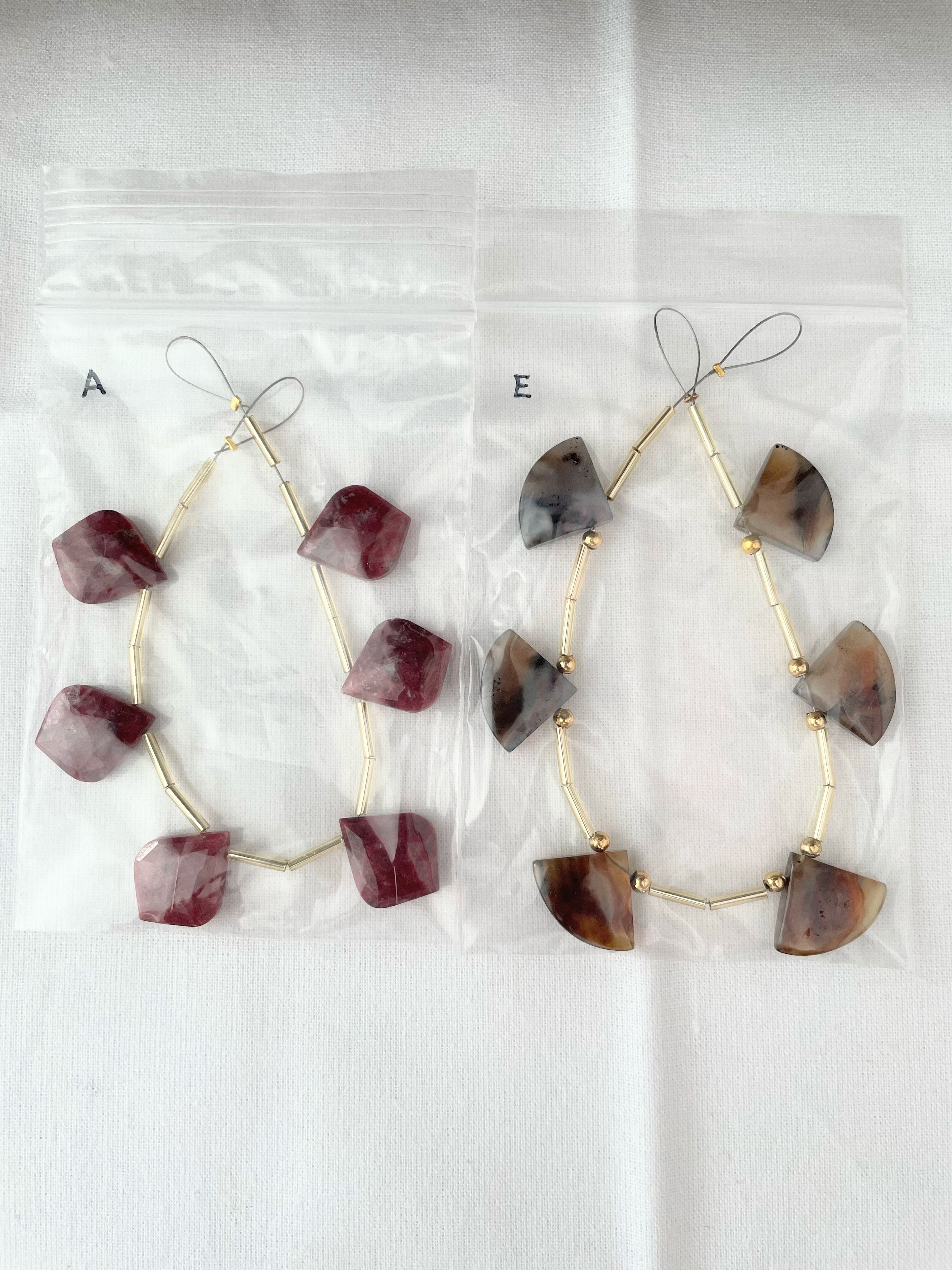 この度はご注文頂き誠にありがとうございます♡ お取り置き期限2/11 モンタナアゲート ファンシェイプE6ピース 5100円 レッドチューライト リーフA6ピース 5100円 グランディディエライト マロン半連B 6500円 どうぞ宜しくお願い申し上げます♡